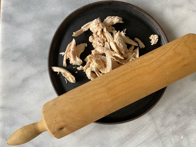 … och ingen hackkyckling får vi sannerligen hoppas. Annars är det här med att banka kyckling grejer! Så det här är veckans lunchhack. Koka 2 kycklingbröst i grönsaksbuljong i ca 10-15 min beroende på stl. Låt dem svalna och sen lägger du ett bakplåtspapper över dem och bankar dem möra. Sen drar du isär dem med fingrarna och fryser in och så har du massor med bra lunchkäk.
