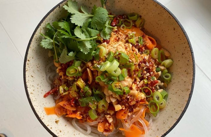 Jag gjorde en liten utflykt till min lokala, asiatiska butik i helgen. Köpte då på mig alla möjliga sorters nudlar. En favorit är sötpotatisnudlar. Jag gillar att de har en liten kärna och är något annat än vete och ris. Sen svängde jag ihop en chiliolja för det är det bästa man kan ha i […]